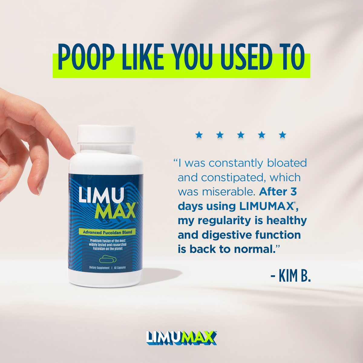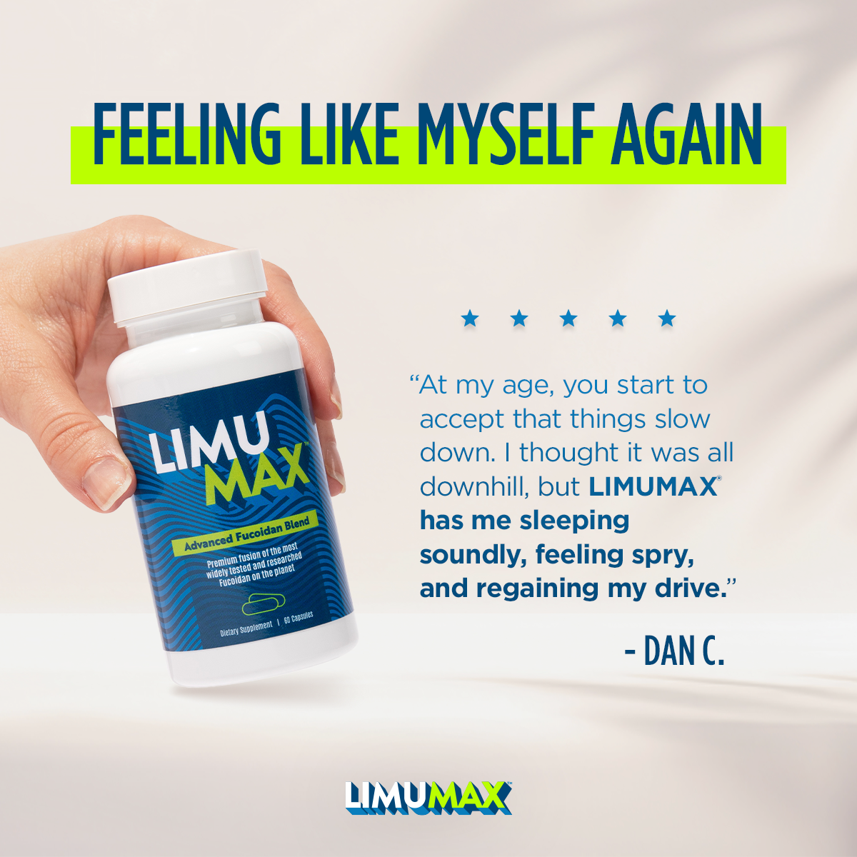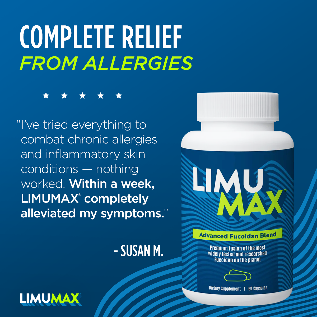 LIMUMAX® is brought to you by the team that has been formulating the highest quality and best-selling Fucoidan-based products on the market since 2001. This breakthrough innovation is the most potent, most affordable, and most effective form of Fucoidan available on the market. LIMUMAX ‘Dual Species’ Advanced Fucoidan Blend comes in a convenient 1-a-day capsule form, and is suitable for the whole family.