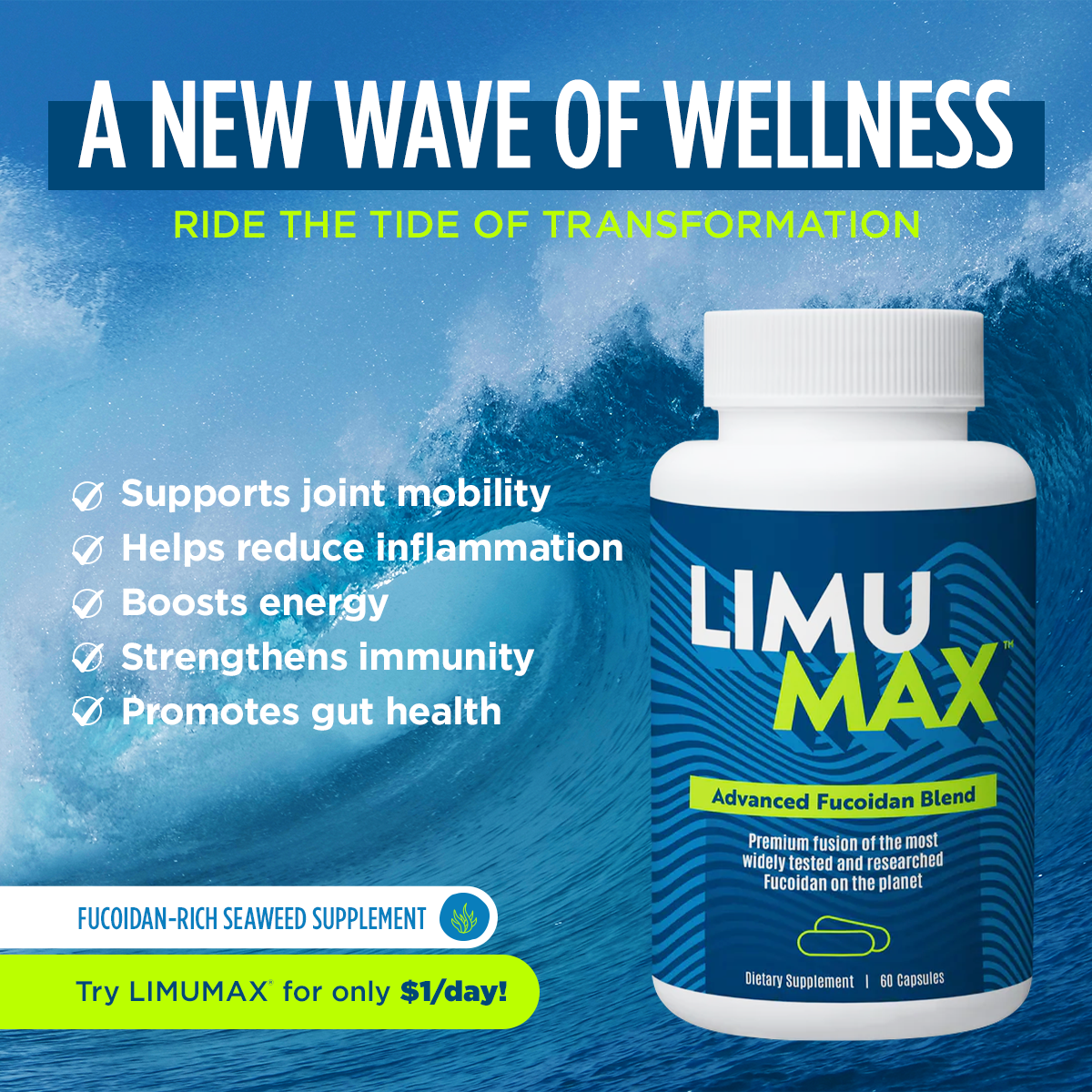 Sustainably sourced and exclusively extracted from wild-harvested, certified organic seaweeds found in the world’s most pristine waters, LIMUMAX® delivers Fucoidan with unprecedented potency, purity, and bioactivity.